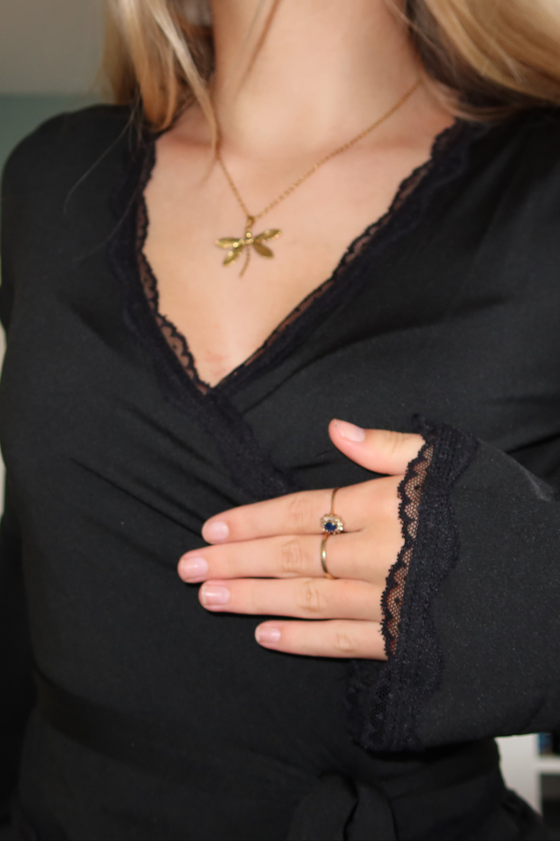 De zachte, stretchy stof zorgt voor ultiem draagcomfort, terwijl de licht uitlopende mouwen en kanten details een luxe touch geven. Perfect te combineren met een jeans voor een casual-chique look, of met een rok voor een avondje uit.